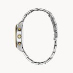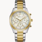Lds. Caravelle Watch. Stainless Steel Two-Toned Round Silver-White Mop Dial W/ 3-Sub-Dials. Gold Colour Markers And Hands. 30M Water Resistance. Quartz